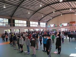 集会などの大勢の人数が集まる場では、十分な換気とマスクを着用し、人と人との感覚を開けるようにします。また、国歌や校歌などの斉唱をしないようにします。徹底した予防を引き続き行い、子ども達の健康と安全に留意いたします。保護者の皆様におかれましても、ご理解とご協力をよろしくお願いいたします。