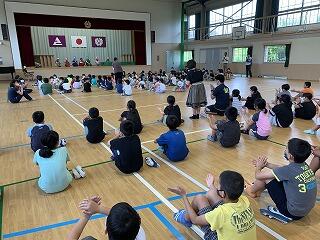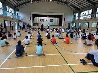 2校時に全校集会が行われ、先生方から1学期前半の子ども達のようすや、夏休みの学習、生活、健康についてのお話がありました。子ども達は最後まできちんとした態度で聞いていました。