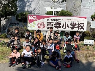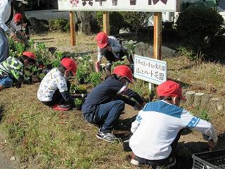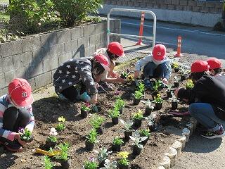 真幸まちづくり協議会の方々から、ビオラやノースポール、ハボタンなどたくさんの苗をいただきました。子ども達は心をこめて植え、学校を美しく彩ってくれました。
