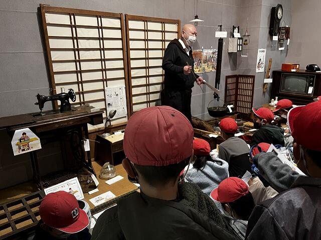 2月3日(金)に3年生の子どもたちが、社会科で昔の生活の様子について調べるため、歴史民俗資料館に行きました。資料館には昔使われていた古い道具がたくさん展示してあり、資料館の方が丁寧に説明してくださいました。