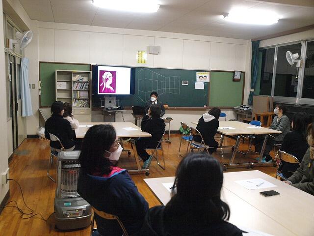 2月9日(木)の家庭教育学級では、真幸小の﨑田教諭による「人権学習」でした。小平奈緒さんの話を通して、一流の選手がどのようなことを考えているのか、海外遠征をして感じた日本の選手と海外の選手の違いなど、大変驚くことばかりでした。また、私たちのものの見方、考え方は、時や立場や見方が変化すると、考え方も変わってくることなど実例も交えて話をされました。とても参考になりました。人との違いを尊重しあうことの大切さを感じた1時間でした。