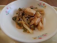 今日の給食です。防災食育センターの皆さんが、栄養価を考え、子どもたちがおいしく食べられるように切り方や調理方法など心配りをして毎日作ってくださっています。