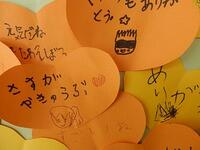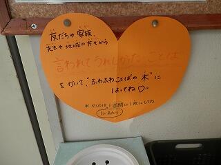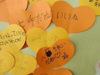 保健室の先生が、「友だちや家族、先生や地域の方々から言われてうれしかった言葉を書いて、ふわふわ言葉の木に貼ってね。」と掲示をしたところ、たくさんのふわふわ言葉が集まりました。