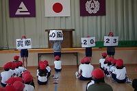 4月27日(木)に運動会の結団式を行いました。全校児童が体育館に集合し、体育委員会の進行で行いました。はじめに、体育委員会が今年のスローガンを発表しました。スローガンは、「真幸の風2023」です。
