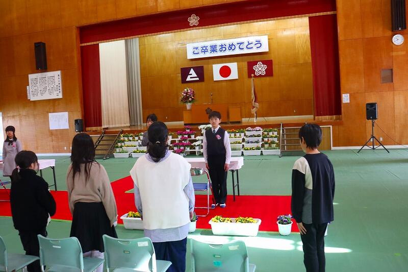 最初にブックビンゴの表彰を行いました。次に校長先生の話。話の内容は「岡元小に咲いている植物のクイズ」「クリスマスに関するクイズ」「AIについて」でした。各担当の先生方から「冬休みについてがんばってほしいことや気をつけてほしいこと」を話してもらいました。