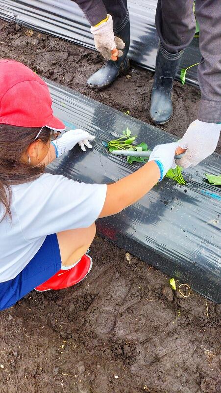 高齢者クラブの方と植えた芋が大きく育ち、本日収穫しました。