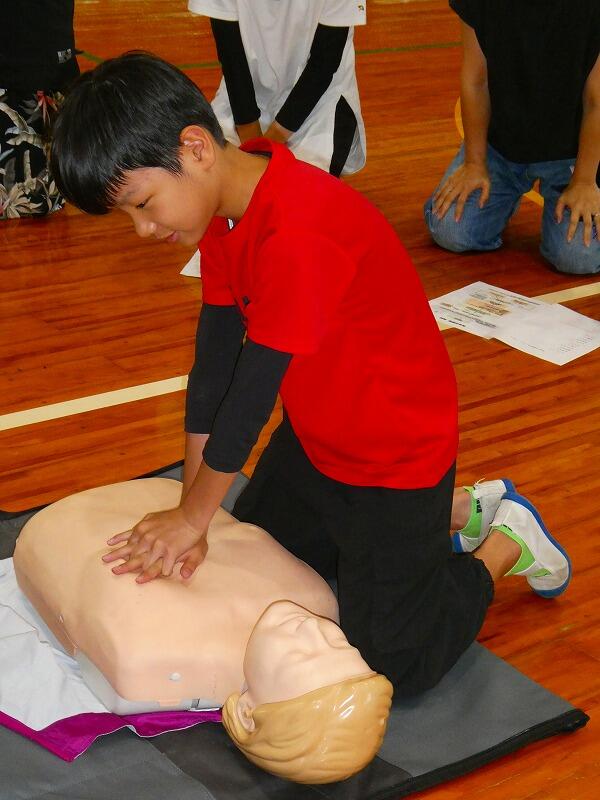 えびの市消防署の方に来て頂き、避難訓練をしました。消火器の使い方や煙体験を全校児童で行いました。