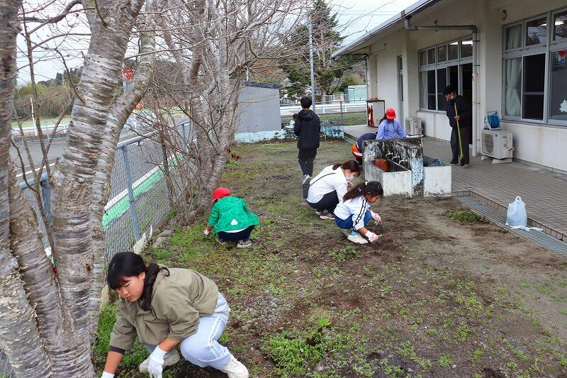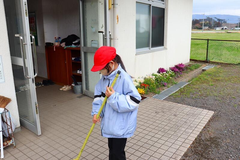 えびの学「地域貢献活動」での子ども達の話し合いの中で、「上浦地区に感謝の気持ちを伝えるために清掃活動をしよう」と自主的に決め、全校児童と全職員で清掃をしました。