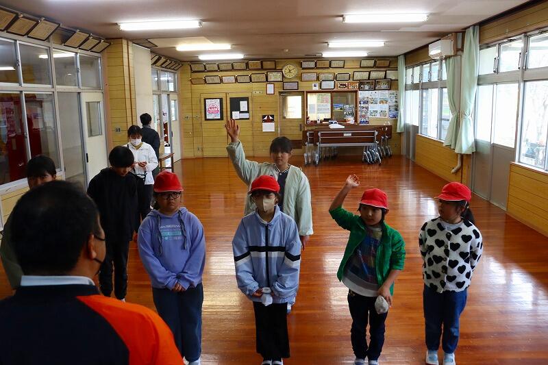 前日の雨の影響で運動場での開催はできませんでしたが、体育館で実施しました。