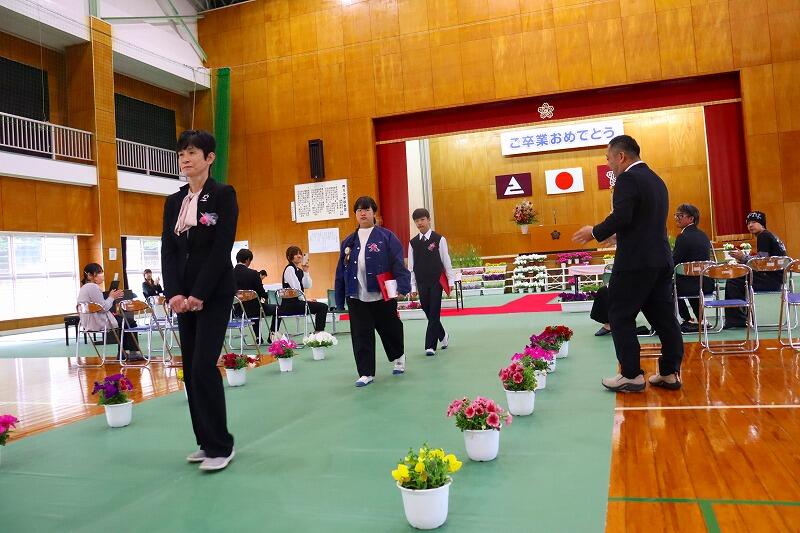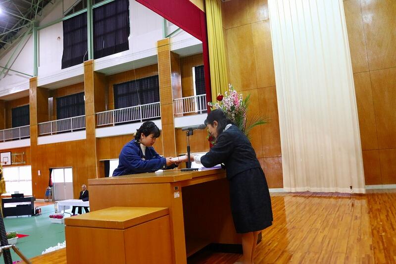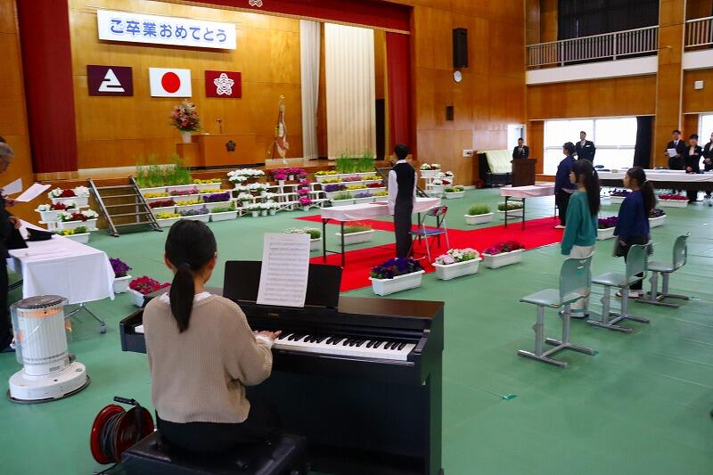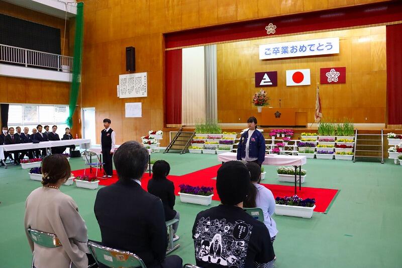 卒業生の2名の卒業式が行われました。卒業生の保護者や在校生も全員参加して、見送りました。たくさんの来賓の方も御臨席頂き、卒業生の門出を祝ってもらいました。