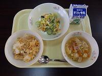 今日は、6年生が小学校で食べる最後の給食の日です。給食にもたくさんの思い出があることでしょうね。カレーピラフには、鶏肉、玉ねぎ、とうもろこし、青豆などが入っています。とうもろこしや青豆の食感が良いです。カレーの味がちょうどよく美味しいです。スープには、マカロニ、じゃがいも、ベーコン、玉ねぎ、にんじん、セロリ、トマトなどが入っています。ABCマカロニがたくさん入っていて、文字をさがしながら楽しんで食べました。トマトの味が濃厚でとても美味しいです。イタリアンサラダには、ハム、きゅうり、赤パプリカ、カリフラワー、アスパラガスなどが入っています。彩りが良く、食材のいろいろな食感も楽しめます。ドレッシングの味が野菜にからんでとても美味しいです。ケーキは、薄いピンク色で、ムースになっています。美味しくいただきました。