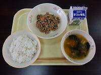 【献立】麦ご飯、いももち汁、肉みそ丼(具)