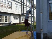 今日の全校体育では、旗を使って、基本の動きを練習しました。音や動きがそろうととてもかっこいいです。