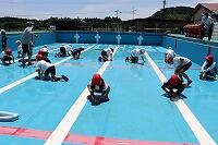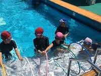 昨日プール清掃をして、水を入れ替えました。給水中でまだ水が少なく、浅くて1年生にぴったりのプールになっていたので、1年生だけで授業が行われました。プールの底にある貝殻をもぐって捕ったり、浮いたりして充実した時間になりました。