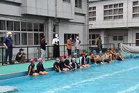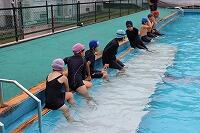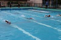 雨で順延になっていた水泳記録会が行われました。1年生はフラフープくぐり、3年生以上はクロールを泳ぎました。自分で立てた目標の距離を泳ぎ、練習の成果を発揮していました。学年リレーをして、最後に全員で遠泳をしました。