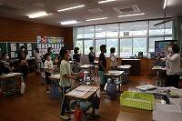 今日は、登校日でした。全校集会では、講師に、えびの市在住の上水さんに来校していただき、「わたしたちの故郷 えびの市でも戦争があった」という演題で講話をしていただきました。戦時中の写真を見せていただき、当時のえびの市や西諸県地区の様子についてお話を聞くことができました。真剣な顔で、身をのりだして話を聞く児童もいました。講話後、宮崎県遺族連合会からお借りした資料を見ました。戦争と向き合い、世界の平和を願う貴重な時間となりました。最後に、水泳記録会の表彰が行われました。学級の時間では、図書室の本を貸し出し・返却をしたり、宿題の確認をしたりしました。