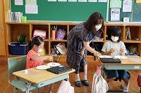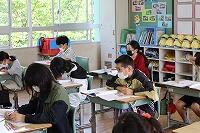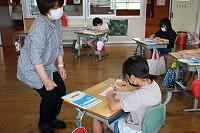 1年生教室で初めての国語の研究授業が行われました。先生方から参観され、とても緊張していました。