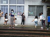 今日の昼休みは、シャボン玉をしました。シャボン玉の道具は、自分で作ったものです。大きなシャボン玉が飛んでいき、とってもきれいでした。