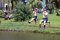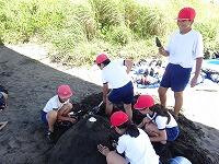 今日から青島青少年自然の家で5年生の集団宿泊学習が始まりました。真幸小学校と友だちと協力し合って活動します。今日は、砂の造形、フィールドアスレチック、キャンドルファイヤーの活動がありました。天気も良く、気温が非常に高い中での活動でしたが、水分補給と休憩をしながら元気に過ごすことができました。