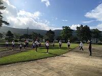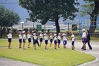 運動会の全体練習が始まりました。今日は、ラジオ体操の練習をしました。手や足の動きを確認しました。