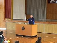 2学期前半終了の全校集会がありました。校長先生のお話や冬休みの過ごし方について先生方のお話、表彰がありました。今年も校長先生と新年の挨拶を練習しました。お正月にできるといいですね。