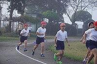 今日の岡元っ子タイムから持久走大会前の練習が始まりました。各クラスで準備体操をして、音楽に合わせて走ります。自分のペースで運動場を走ります。