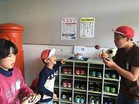 1・2年生は、生活科の学習で学校探検をしました。2年生がリードして、各部屋を紹介していました。先生方と「にらめっこ」や「しりとり」をしてもっと仲良くなりました。