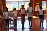 まずは表彰。歯と口の健康啓発コンクール標語での入賞者、毎週月曜日のさわやかデーパーフェクト賞の子どもたちの表彰を行いました。