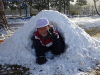 今朝は、雪が積もりました。岡元っこタイムは、学級の時間でした。1年生は、初めての雪だるま作りでした。みんなでかまくらも作りました。