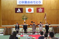 卒業式が挙行されました。教育委員の方やPTA会長からお祝いの言葉、多くの方々から祝詞をいただきました。また、保護者や地域の方々に多数ご出席いただきました。本当にありがとうございました。