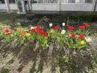 チューリップがカラフルです!春休み中の学校を明るくしてくれています。