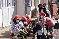真幸まちづくり協議会から花の苗をいただき、全校児童で花だんに植えました。水やりや草取り、花つみをして大切に育てていきます。