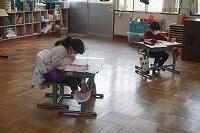 今日と明日は学力テストです。問題をよく読んで解き、見直しもしているようです。
