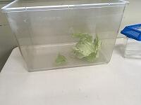 今週からホールに観察コーナーができています。モンシロチョウとアゲハチョウの幼虫です。たくさん葉を食べて、すくすく大きくなってきています。