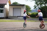 今年度は、一輪車の技を高め合うために一輪車発表会を2回計画しています。今日は、1回目の一輪車発表会が行われました。2~4年生はペアの技、5・6年生は、集団技を披露しました。4月に転校してきた児童も,