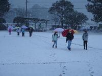 今朝は、雪が積もりました。岡元っこタイムは、学級の時間でした。1年生は、初めての雪だるま作りでした。みんなでかまくらも作りました。