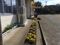 使われていなかった池に地域の方から白砂を提供していただき、土を入れ、花壇ができました。つぼみの苗が多いですが、花が咲く日が楽しみです。水やりや草取りをして、大切に使っていきたいと思います。