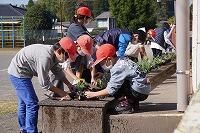 真幸まちづくり協議会から花の苗をいただき、全校児童で花だんに植えました。水やりや草取り、花つみをして大切に育てていきます。