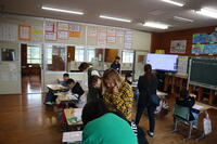 参観授業のあとはふれあいグランドゴルフを行いました。全校児童、保護者、高齢者クラブのみなさんとの、混合のチームを編成して行いました。