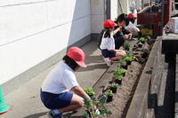 全校みんなで、ビオラ、ノースポール、なでしこ、ペチュニア、葉ボタンの苗を丁寧に花壇、プランターに植えました。