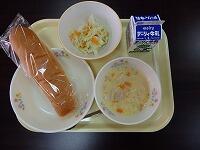【献立】ミルクパン、コーンチャウダー、野菜のレモンマリネ