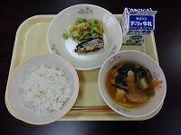 吉野汁には、小松菜や大根などの野菜の他に厚揚げがたくさん入っています。とろみがあってとても美味しいです。さんまは、骨まで柔らかく砂糖や蜂蜜の甘さでとても美味しいです。サラダには、たくさんの青豆の他に、キャベツ、きゅうり、にんじんが入っています。ごま油の風味と甘めの味付けで美味しいです。