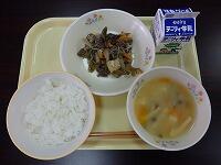 【献立】白ご飯、なめこ汁、きんぴら煮