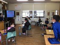 4年生の授業での計画だったのですが・・・初めてのシスコだったので、全校児童が集合して、自己紹介をしたり、手を振ったりしました。これから、遠隔授業等にも活用していきたいです。