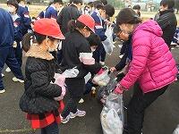真幸中学校の中学生と一緒に「二日市クリーン作戦」をしました。土日は天気も良く、京町二日市には、たくさんの人でにぎわいました。13のグループに分かれ、いろいろな場所のごみを拾いました。たばこの吸いがらやつまようじなどが落ちていました。拾ったゴミは、グラウンドで分別もしました。中学生に優しく声をかけてもらい、リードしてもらって子ども達はとてもうれしそうでした。