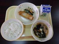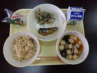 【献立】炊き込みご飯、山海汁、いわしのみぞれ煮、ゆかり和え、かしわもち