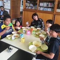 5・6年生の家庭科の時間に調理実習が行われました。収穫をしたお米でご飯を炊き、味噌汁を作りました。
