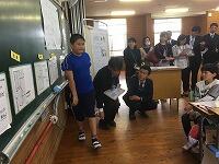 大勢の先生に参観していただき、少し緊張気味の児童でしたが、発表をしたり、意見を出し合って話し合いをしたりしていました。