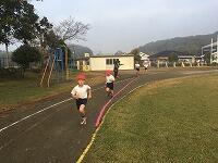 今日の岡元っ子タイムは、持久走練習です。目標に向かって、自分のペースで走っています。