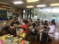 7月18日(木)は、月に1度の全校給食の日でした。全校児童と職員が一緒に給食をいただきました。